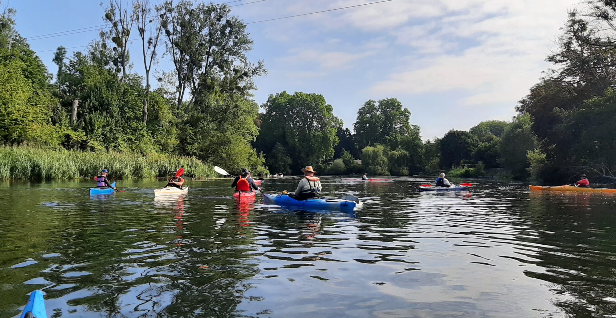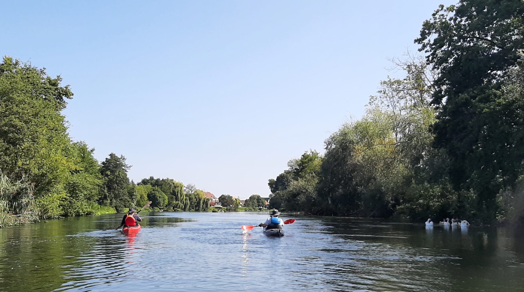 Nach dem Frühstück am nächsten Morgen ging es Richtung Straßburg zu unserer Einsetzstelle an die untere Ill. Also wieder Boote abladen und danach, natürlich, Aufwärmgymnastik mit Paddel. Nun ging es endlich wieder aufs Wasser. Die Ill ist ein toller Fluss auch mit viel Natur, aber breiter als das Groschenwasser. So konnten wir öfter nebeneinander fahren und uns unterhalten oder auch einfach genießen. Die Fahrt durch Watzenau mit tollen Blicken aufs Ufer war schon sehenswert. Die leichte Strömung nahm uns gemütlich mit und ich war fast schon traurig als wir das Ende der Ill erreichten und unsere Fahrt fast zu Ende war. Nun war noch der Rhein zu überqueren und danach noch über den Baggersee zum Paddlerheim zu paddeln. Da wir so gut durchgekommen waren, machten wir heute erst als wir wieder am Bootshaus waren Mittagspause, bevor wir die Autos holten.
