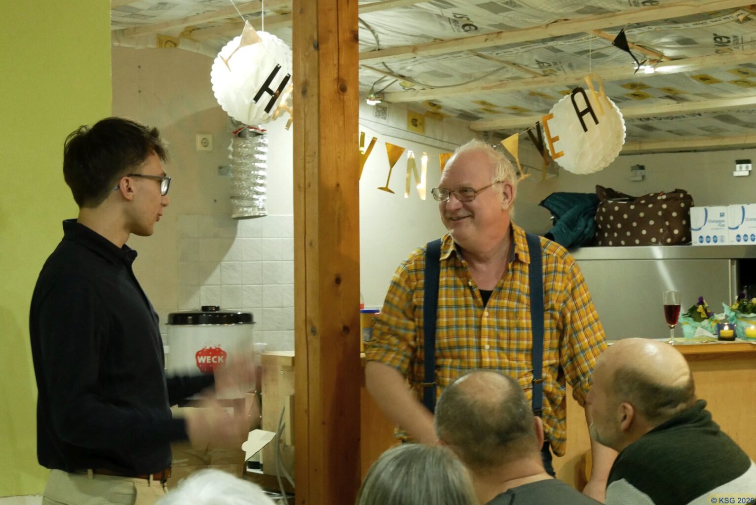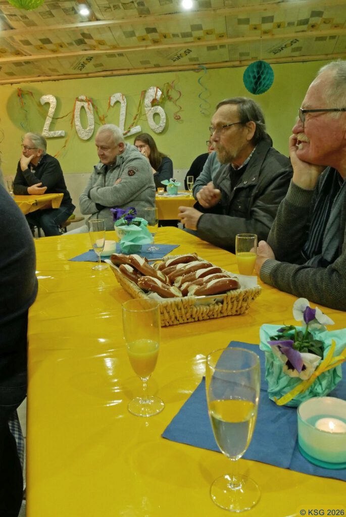 Ganz gemütlich und etwas verspätet haben wir KSGler am 31. Januar das Jahr 2026 begrüßt. Der Grund für die Verspätung: Anfang Januar war unser Vereinsheim noch eine totale Baustelle, die Dämmung für das Dach und die Verkleidung waren noch nicht ansatzweise fertig, der mittlere Pfosten musste das Dach noch halten, nachdem ein neuer Balken eingezogen worden war. Aber dank einer Super-Helfer-Truppe wurde das Vereinsheim bis zum heutigen Termin soweit fertiggestellt, so dass wir alle in gemütlicher Atmosphäre feiern konnten.